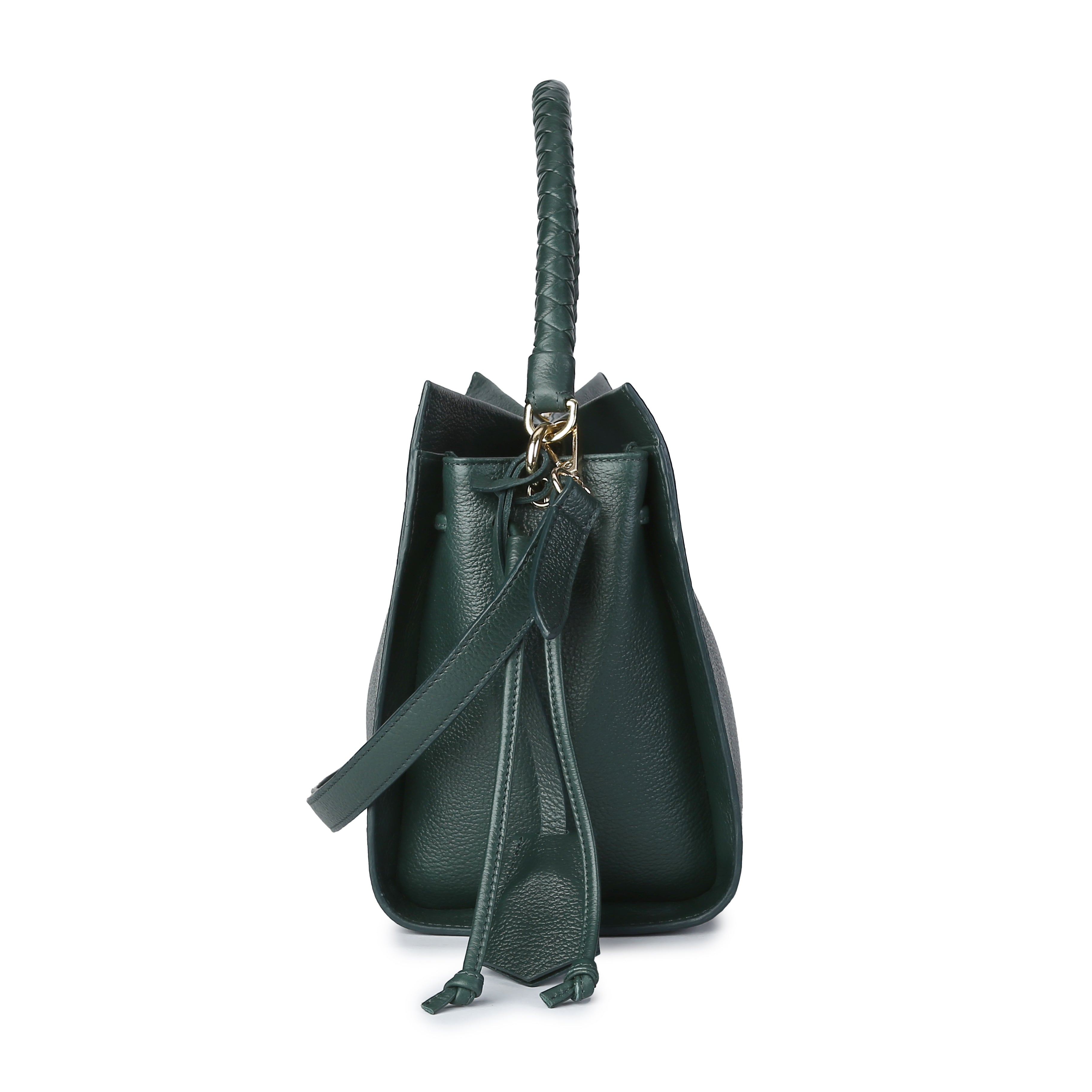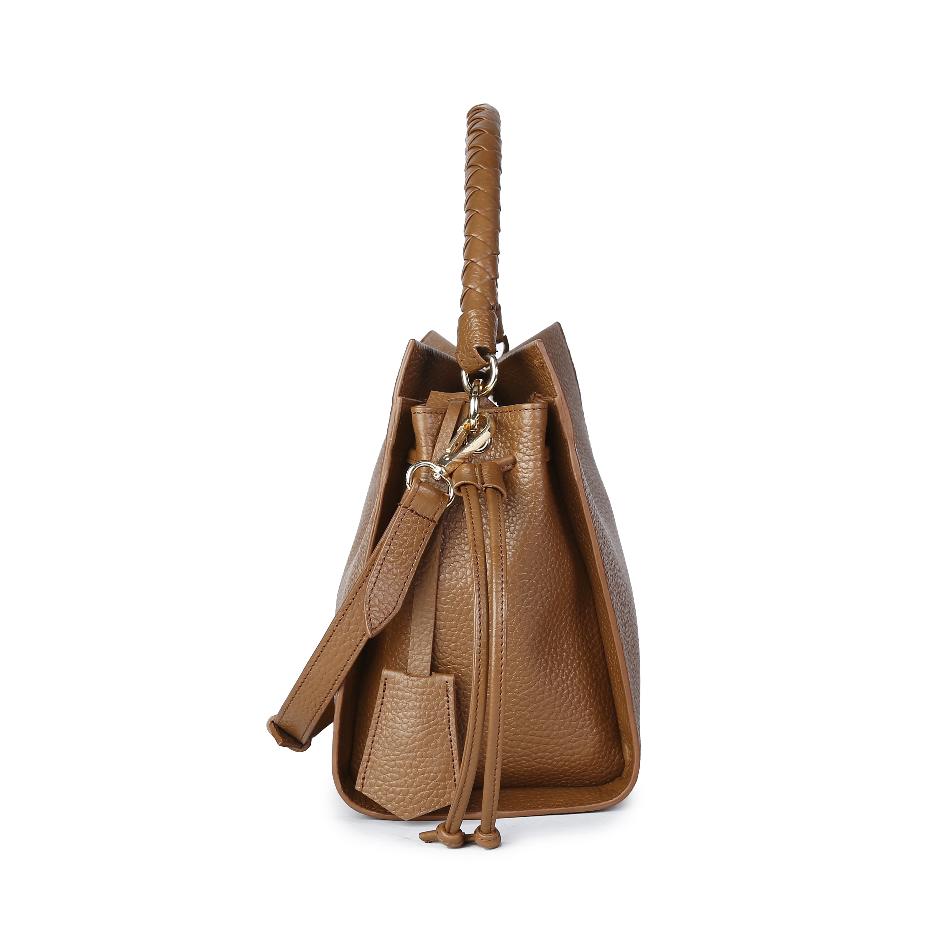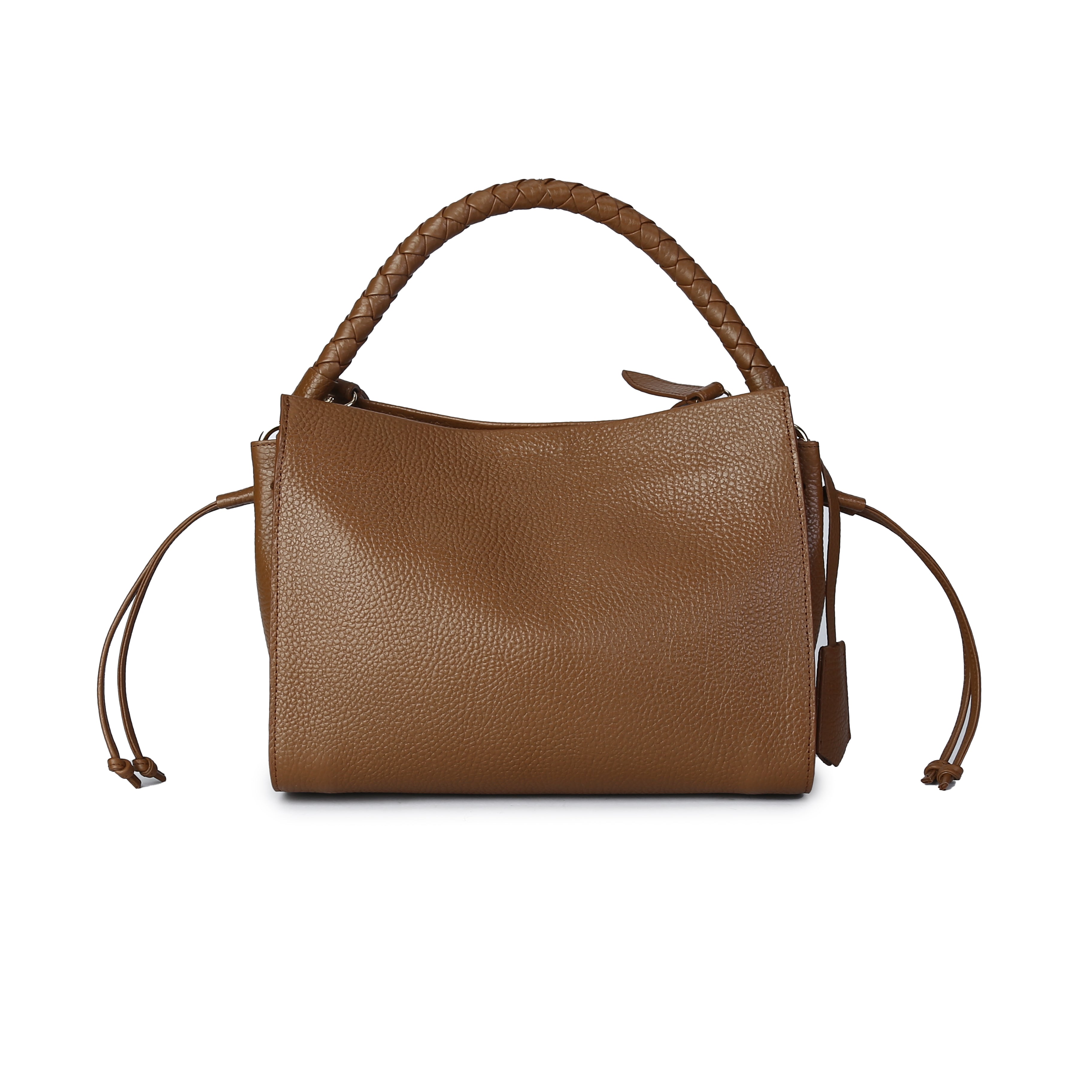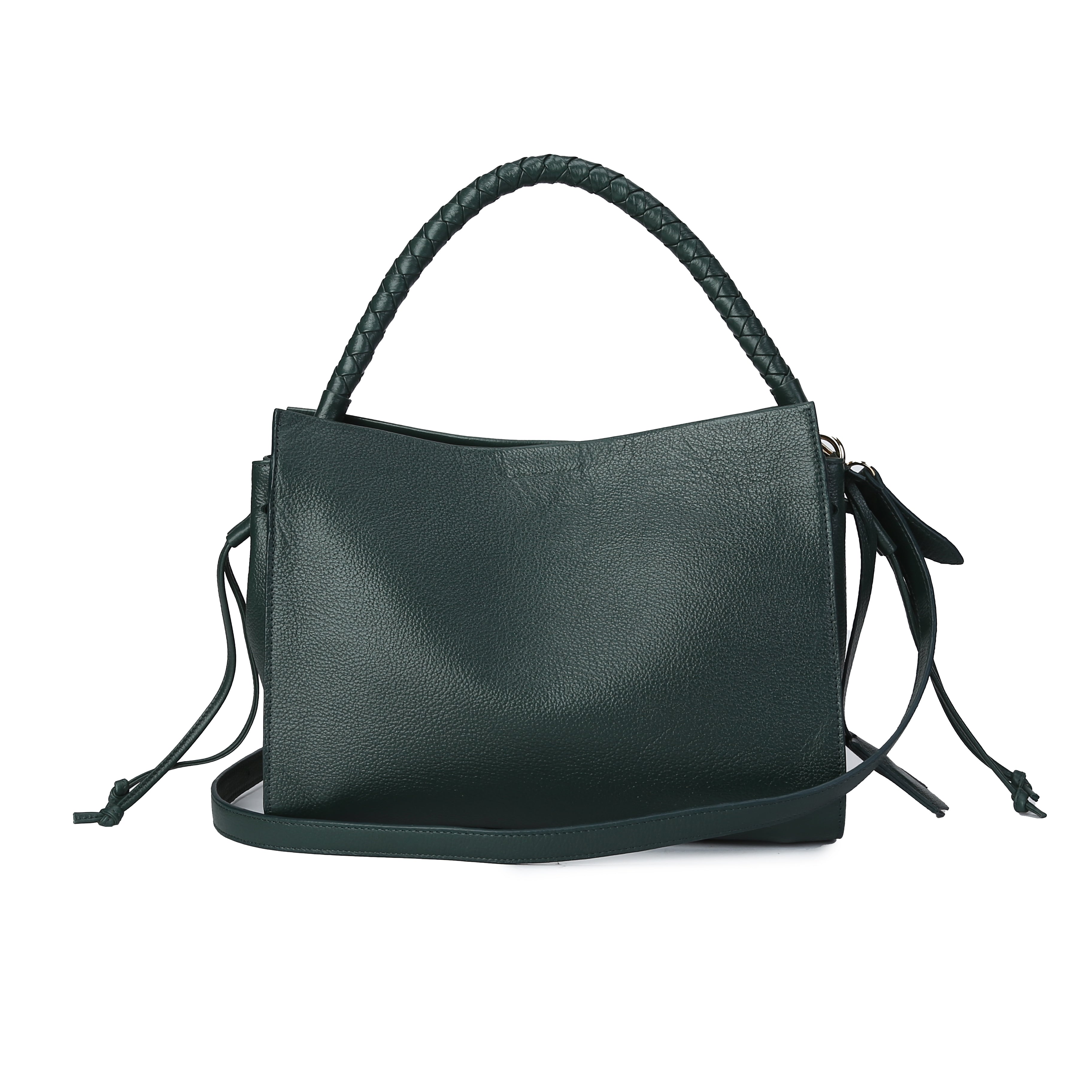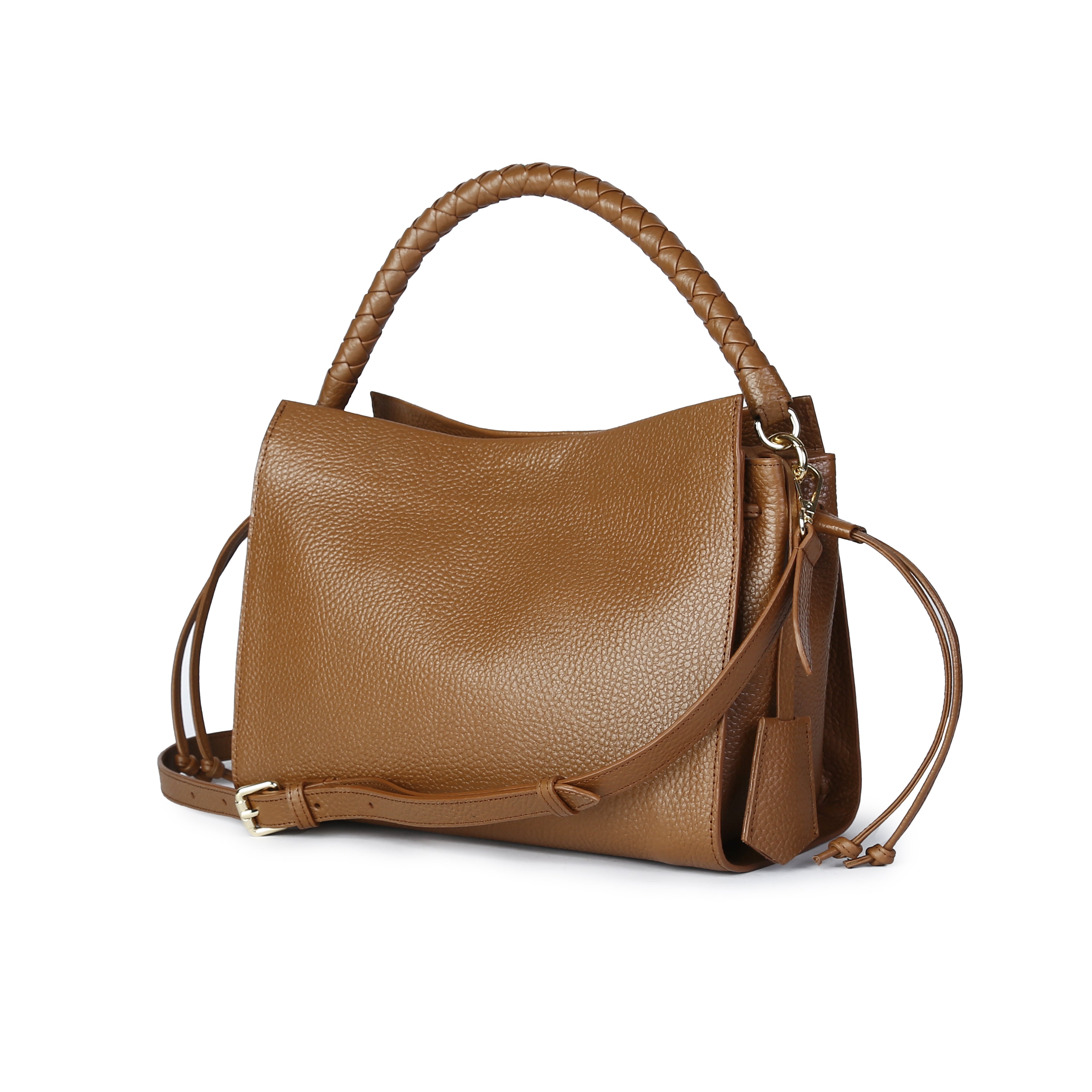 Braided top handle and adjustable leather shoulder strap (46–50 cm drop)